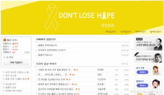 다음커뮤니케이션의 '독하고 도도한 여성들', '뉴빵카페', '내가 아는 카페' 등에서는 회원들은 힘을 모아 세월호 사고 현장에 구호물품을 보내는 등의 황동을 지원했고, '여성시대', '디젤매니아', '소울드레서' 등에서는 세월호 사고 피해자를 위한 모금활동도 이어졌다. '신비한 약초세상'에서는 피해자들을 돕기 위해 회원들의 자발적인 참여로 온라인 바자회를 개최하기도 했으며, 여성시대는 세월호 특별법 제정 촉구를 위한 서명운동도 전개하고 있다. 네이버 카페들도 해피빈 저금통을 달아 회원들의 성금 모금 대열에 동참했다.