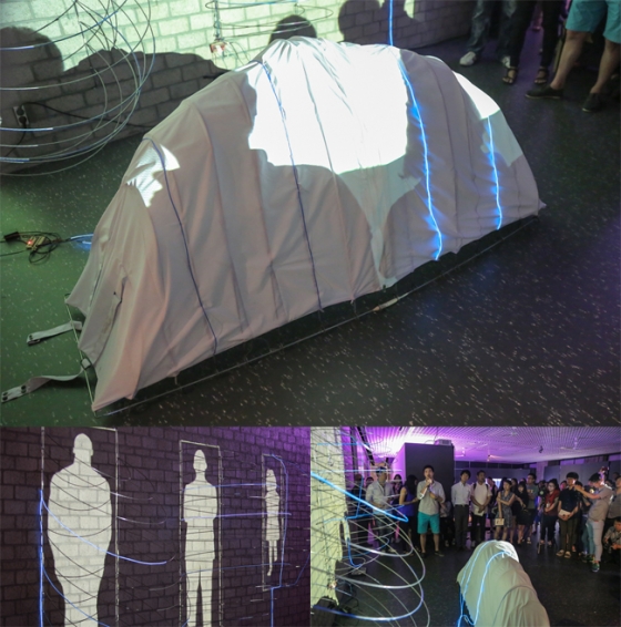 이 자리에는 다양한 재난상황에 대비할 수 있는 1인용 배낭형 셸터를 비롯해 무선통신 제어가 가능한 LED와 광섬유로 만든 공연용 의상·신발에 센서를 부착해 발자취를 보여주는 제품도 모습을 드러냈다.