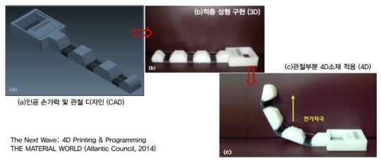 생활 로봇 분야에선 인공관절·손가락에 4D프린팅 소재를 활용하면 이용자가 원하는 난위도 있는 동작 제어가 가능하다.