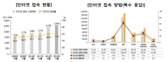 인터넷 접속 사업체는 전체의 71.0%(255만6326개)로 전년대비 2.4%p 증가했다.