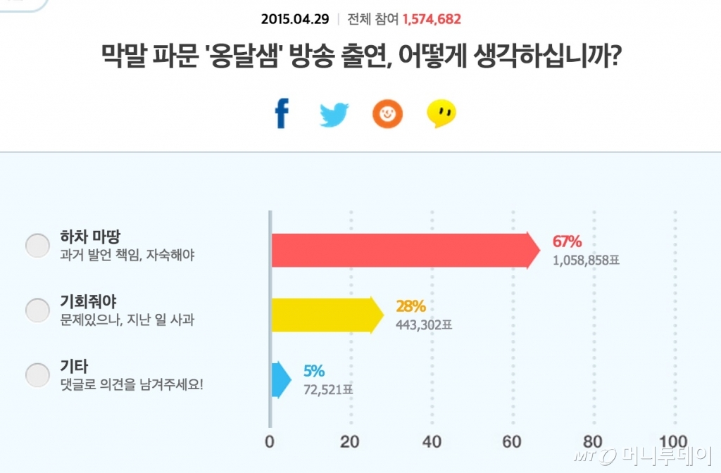 논란을 낳았던 인천아시안게임 개막식 최고의 장면에 대한 투표는 300만 명이 가까운 이용자가 투표에 참여했고, 막말 파문 '옹달샘' 방송 출연과 관련해 150만 명, 지하철 9호선 '봉은사역' 종교 편향 논란에도 100만 명 이상이 참여했다. 공무원 연금제도 개혁과 한국영화 블록버스터 매치에도 35만 명이 넘는 사용자가 몰리는 등 네이트Q를 통해 의견을 피력하는 누리꾼이 적지 않다.
