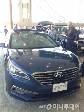 이날 전시장 한 켠에는 '같아지자는 것이 아니라 함께 하자는 것'이라는 슬로건과 함께 안드로이드를 사용하는 각종 스마트폰과 태블릿 등이 수백종 전시됐다. 여기에는 삼성, LG 등과 같은 한국 제품도 있었다. 안드로이드 오토 시연을 위해 전시해 둔 자동차 4대 중 1대는 현대의 자동차였다.