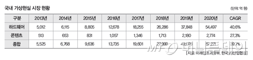 디지캐피탈에 따르면 세계 증강현실(AR)과 가상현실(VR) 시장 규모는 2020년 150억 달러로 이중 AR이 120억 달러, VR이 30억 달러가 될 전망이다. 또 다른 시장조사 기관 마켓앤마켓츠는 VR 시장규모가 2015년 2조5500억 원에서 2020년 5배가량 성장한 11조4000억 원이 될 것으로 예측했다.