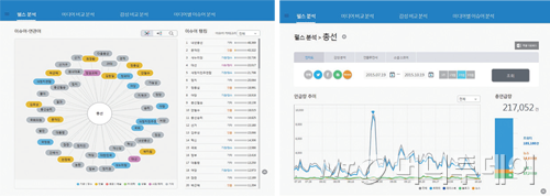 형태소 분석 기술을 이용해 키워드와 같이 언급된 단어도 함께 분석한다. 일간, 주간, 월간 등 시기별로 해당 후보를 언급한 데이터(버즈량)를 비교해 관계를 살핀다. 총선을 키워드로 삼았을 때 새누리당, 새정치민주연합이 같이 언급된 정도가 각각 어느 정도인지 분류에 따른 점유율을 살피는 것이다. 과거에는 단순히 언급량만 비교했지만 이제는 언급한 내용이 긍정적인지 또는 부정적인지에 대한 분석도 가능하다. 이때 정확성을 높일 수 있도록 반어법에 따른 표현도 걸러내 반영한다.