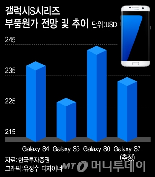 갤럭시S7의 제조원가도 낮아졌다. 역대 갤럭시S 시리즈와 달리, 전작의 단점을 보완하고 삼성페이 등 SW와 서비스를 높이는데 주력했다. 하드웨어 스펙은 S6 때와 비슷하게 유지해 부품원가가 낮아졌다. 갤럭시S7의 출고가가 전작보다 모델별로 2만2000원~8만8000원까지 낮아진 이유다.