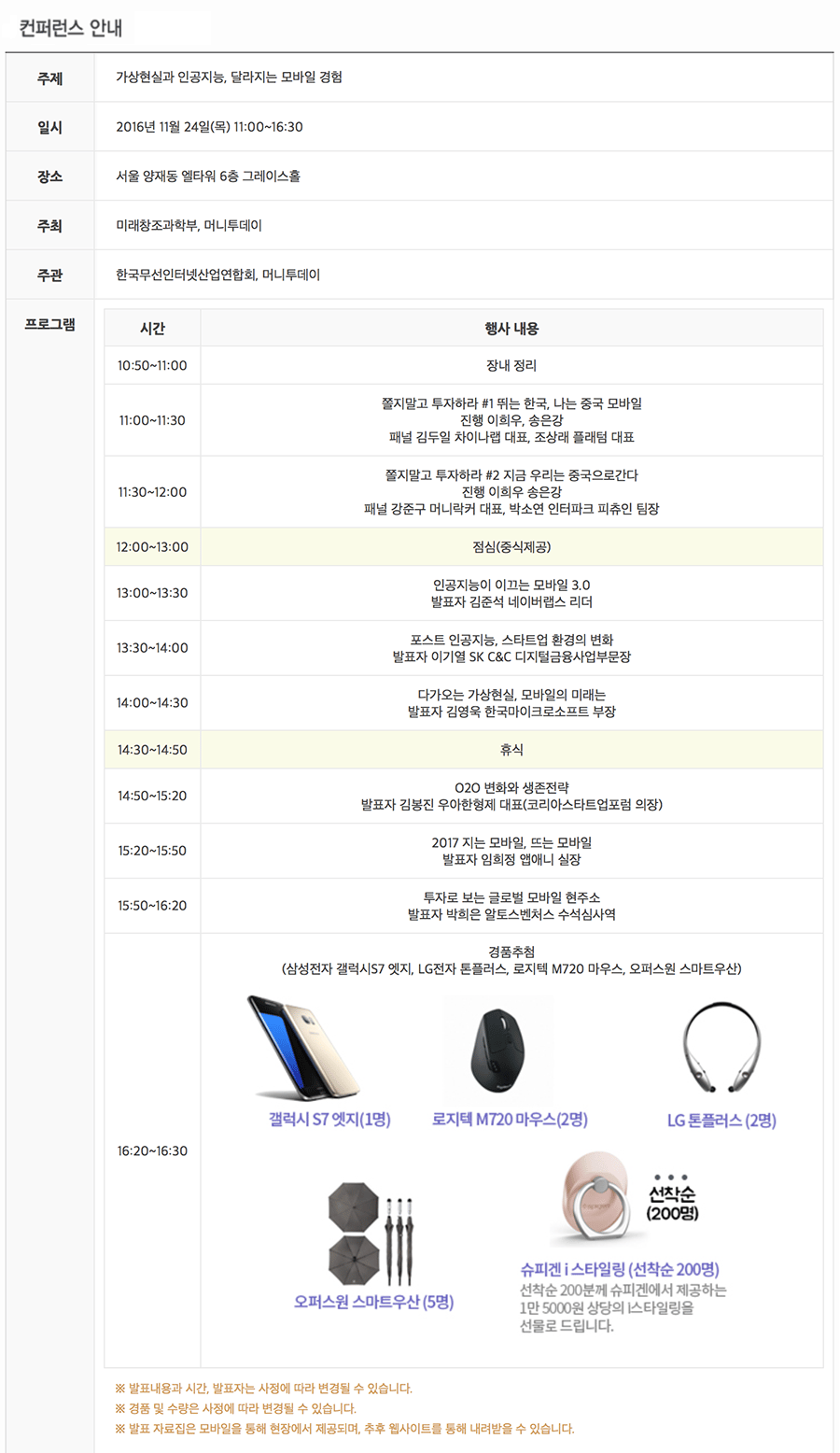 -일시 : 2016년 11월 24일(목) 11:00~16:30 모바일 컨퍼런스 (9:30~10:30 모바일 어워드 시상식)
