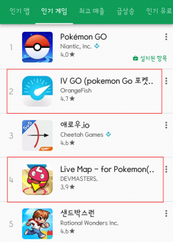 ◇게임과 함께 뜬 변칙 앱들… 계정 ‘차단’ 가능성=17일 게임업계에 따르면 지난달 24일 포켓몬 고가 한국에 출시된 이후 선풍적인 인기를 끌면서 GPS(위성위치확인시스템) 조작, 포켓몬 개체값 확인, 포켓몬 출몰 지도 등 변칙 앱들의 다운로드 수도 급증했다. ‘IV GO’(개체값), ‘Fly GPS’(GPS), ‘Live Map-for Pokemon’(지도) 등이 대표적이다.