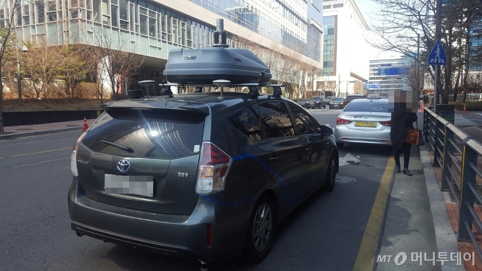 이번에 포착된 차량은 지금까지 네이버가 공개해온 사진 속 자율주행차량과 똑같은 어두운 회색 색상의 토요타 프리우스V다. 차량에는 네이버나 네이버의 기술개발 연구소 네이버랩스의 로고가 붙어있지 않았다. 그러나 차량 상단에는 앞서 네이버랩스가 공개한 자율주행차량 사진과 동일하게 레이더와 선서 등 각종 전자장비가 위치해 있었다.