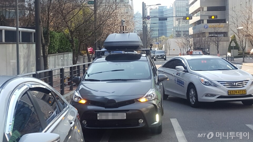 차량을 포착한 직장인 A씨는 "해당 차량은 차도 한 쪽에 비상 깜박이를 켠 채 정차 중이었다"며 "운전석에는 네이버랩스 직원으로 보이는 사람이 탑승해 있었다"고 설명했다.