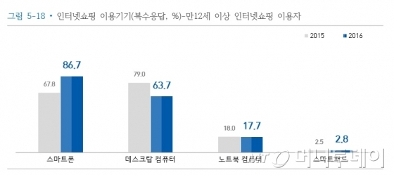 2016 인터넷이용실태 조사…스마트폰 통한 인터넷 쇼핑 86.7%, 전년비 18.9%p↑