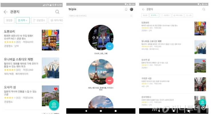 트리플은 위치정보 뿐 아니라 계절과 날씨, 시간 등 주변 환경에 따라 관광지와 맛집, 놀거리, 쇼핑 리스트 등 여행객 각자에게 최적화된 관련 정보를 실시간 제공한다. 호텔 예약과 포켓 와이파이, 액티비티, 교통패스 등 각종 여행 상품을 예약하거나 구매할 수도 있다. 현재 일본 주요 도시와 동남아시아, 유럽, 미주 포함 전세계 70여개 도시에 서비스 중이다. 빅데이터, 머신러닝 등 고난도 기술이 적용됐다. 최 대표는 “여행지에서 아침에 예상치 못하게 비가 온다면, 근처에서 즐길거리 등 상황에 따라 트리플이 끊임없이 추천하고 권해준다”며 “책, 블로그, SNS 후기 등 모든 여행 관련 정보를 끌어와 빅데이터화했고 여행자가 100명이라면 그들이 보는 화면이 여행자 각자의 상황에 따라 다르다”고 말했다.