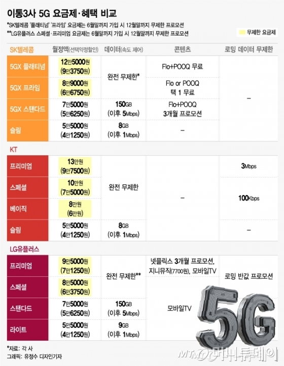 [막오른 5G 시대]④5만5000원부터 시작, 8만원대 ‘완전 무제한’ 5G 요금제…언제 바꾸는게 나을까