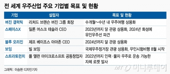 <!--end_block-->[달착륙 50년, 아폴로 키즈의 꿈]민간 우주산업 투자액 정부의 3배…관광업 및 위성인터넷 등 산업 발전하면서 기업들 경쟁