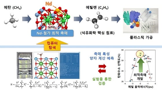 압축된 촉매 후보 물질 65종류 가운데 네오디뮴(Nd)이 첨가된 스트론튬타이타네이트(금속산화물인 페로브스카이트의 일종) 촉매가 메탄의 산화를 돕는 높은 활성을 보임을 확인했다.
