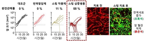 400여 명의 난치암 환자 암조직을 분석해 암혈관에서 스팅을 활성화시킬 경우 암 내부의 비정상적인 혈관이 차단돼 종양의 성장과 전이가 억제되는 것을 확인한 것이다.