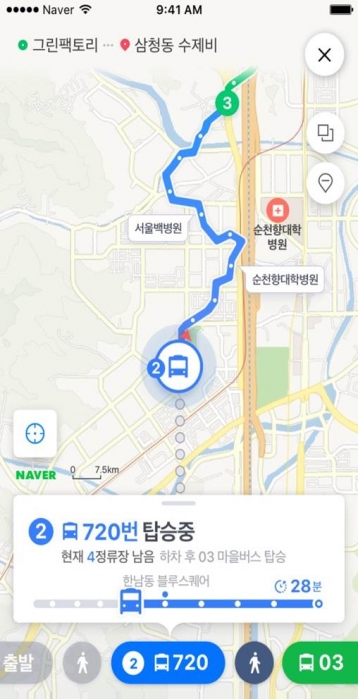 이외에도 내가 탄 대중교통의 위치와 목적지까지 남은 정거장 수를 한눈에 살펴볼 수 있도록 고도화된 대중교통 내비게이션 기능도 준비 중이다.
