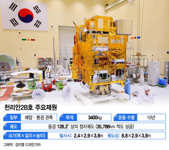 2B호는 변화무쌍한 우주 환경에서 10년간 머무른다. 앞서 작년 12월 우주로 먼저 떠난 형겪인 기상관측 전문 천리안2A와 2B호의 총사업비는 7048억원, 사업 기간은 2011년 7월부터 2020년 10월까지다.