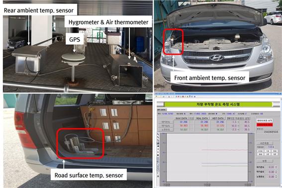 연구팀에 따르면 ‘모바일 차량 주행환경 관측장비(Vehicle is a Sensor)’를 통해 실시간으로 차량 바깥의 온도와 위치정보를 동시에 수집했다. 수집한 정보는 롱텀에볼루션(LTE) 통신 등의 방법으로 ‘도로 주행 환경 분석 플랫폼’으로 전송했다.