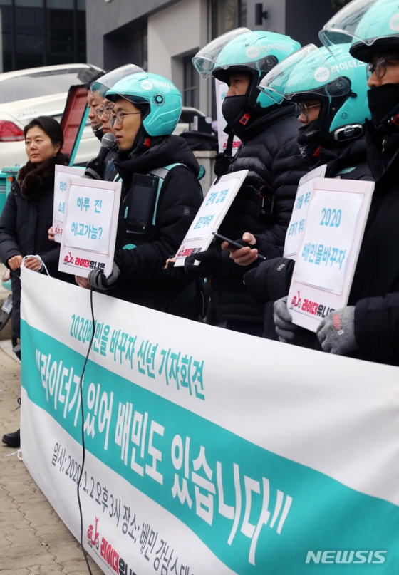 구교현 라이더유니온 기획팀장은 "전적으로 합병에 대해 반대한다기보다 합병 후를 우려하는 것"이라며 "한 달짜리 쪼개기 계약을 하고 수수료도 마음대로 조정하고 있는데 시장 지위가 높아지면 횡포가 더 심해질 것을 걱정하고 있다"고 말했다.