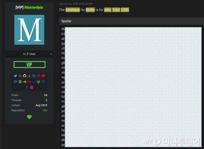 ◇다크웹 유출된 연예인 계정정보 60% 유출