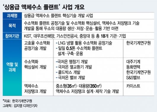 연구단은 국토교통과학기술진흥원의 지원을 받아 오는 2023년까지 경남 김해 한국기계연구원 LNG·극저온 기계기술 시험 인증센터에 일일 처리용량 0.5톤(t)의 파일럿급 ‘고효율 수소액화 실증 플랜트’를 구축할 계획이다. 총 381억원의 연구비가 투입되며, 대우조선해양, 한국과학기술연구원(KIST), 카이스트(KAIST) 등 산학연 총 18곳이 참여한다.
