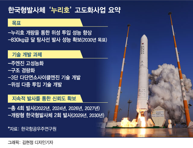 ‘누리호 개발 현황과 누리호 이후’를 주제로 발표한 조 팀장에 따르면 누리호는 내년 2월과 10월 두 차례 발사한 후 주엔진 고성능화, 3단 다단연소사이클엔진 기술 확보, 구조 경량화, 위성 다중 투입 기술 개발 등에 착수하는 고도화사업을 추진한다.