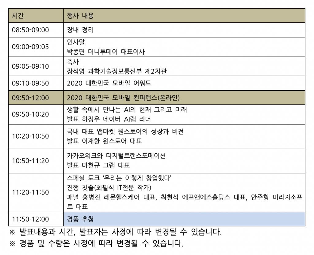 [대한민국 모바일 컨퍼런스 2020 개요]