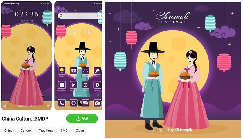 당시 샤오미 테마스토어에 등록된 배경 화면을 보면 한복을 입고 있는 남녀가 보이지만, 정작 제목은 중국 문화라고 적혀 있었다. 그런데 해당 배경 화면은 애초 유료 이미지 사이트에서 한국, 추석 전통 한복이라고 소개된 디자인을 무단 도용한 것으로 확인됐다. 누군가 악의적인 목적으로 중국문화로 둔갑시켜 등록한 것으로 보인다.