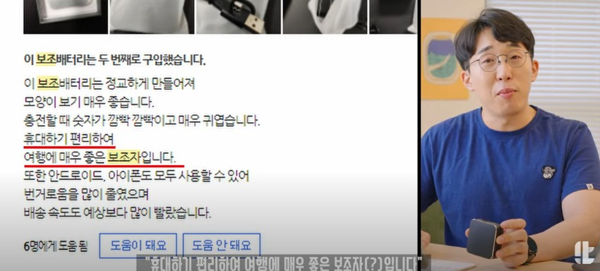 실제 잇섭이 진행한 실험에 따르면 해당 배터리는 핸드폰을 1회밖에 완충하지 못했다. 잇섭은 "절대 2만mAh로 볼 수 없고, 그나마 1만mAh 정도로 추측해 볼 수 있다"며 "결론적으로 구입한 제품은 사기라고 볼 수 있고 리뷰 조작을 의심해 볼 수 있다"고 말했다.