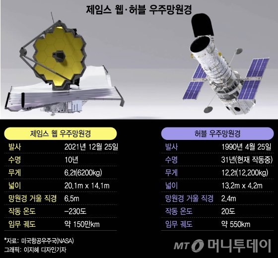 웹 망원경은 1996년부터 미 NASA와 유럽우주국(ESA)·캐나다우주국(CSA) 등이 추진해온 프로젝트다. 투입 예산만 약 100억달러(11조8500억원)에 달한다. 웹 망원경은 심우주에서 137~138억년 전 빅뱅 이후 2~3억년 뒤 생겨난 최초의 별과 은하에서 나온 빛을 적외선으로 관측할 예정이다. 현재 목표 궤도인 심우주 150만㎞에 도착한 웹 망원경은 기기 점검, 시험 관측 등 모든 준비를 마치고, 이르면 올 5~6월 임무를 수행할 전망이다.