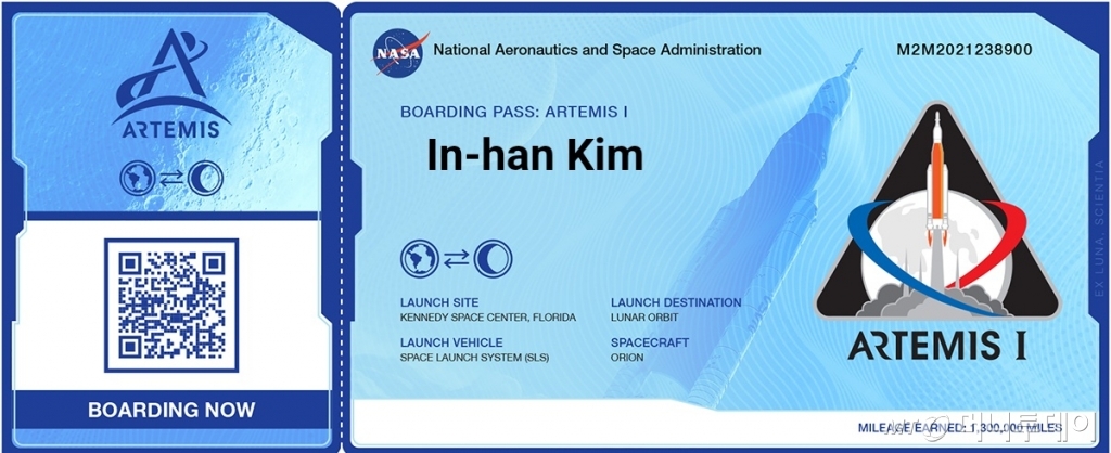 13일(현지시각) NASA에 따르면 홈페이지를 통해 남녀노소 누구나 탑승권을 발급할 수 있다. NASA 홈페이지에서 '당신의 이름을 아르테미스 1호와 함께 우주로 보내주세요'(Send your name to Space with Artemis 1)를 눌러 이름과 비밀번호를 입력하면 탑승권이 곧바로 발급된다.