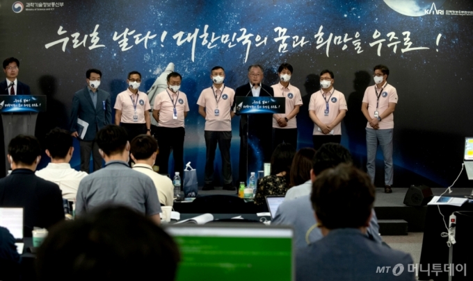 이종호 과기정통부 장관은 "대한민국 우주 하늘이 활짝 열렸고, 대한민국 과학기술이 위대한 전진을 이뤘다"며 "무에서 유 창조한 것과 다름 없는 발사체 기술 개발 위해 오랜 기간 땀과 눈물 열정 쏟아주신 대한민국 모든 연구원, 기업 관계자들에게 뜨겁게 감사드린다"고 말했다.