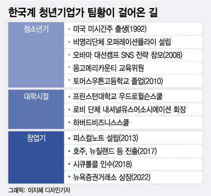 명문 프린스턴대학교에 진학해 정치학과 컴퓨터공학을 전공했다. 근원적인 사회 변화를 원했던 그는 창업의 길을 선택했다. 그는 미국 한인사회에서 '차세대 빌 게이츠'로 불렸다. 일찍이 CNN '세계를 바꿀 10대 스타트업', 비즈니스인사이더 '25대 유망 스타트업' 등에 피스컬노트의 이름을 올렸고, 자신도 포브스 '30세 이하 30인 창업가'에 꼽히는 등 글로벌 스타트업의 대표주자 중 한명으로 주목받았다.
