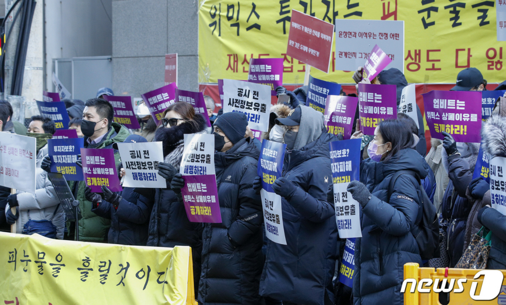 한편, 위믹스 투자자들은 '피해자 협의체'를 꾸리고 이날 오후 2시 서울 강남구 업비트 건물 앞에서 위믹스 상장 폐지 이유 공개 및 투자자 피해보상을 촉구하는 집회를 열었다. 협의체는 "닥사가 4개 거래소만의 거수 투표로 위믹스 상폐를 결정한 건 자율규제 권한을 남용한 것"이라며 "금융위원회나 공정거래위원회 등도 하지 않을 가혹한 제재를 사적기관이 제대로 된 가이드라인도 없이 실행한 것은 시장지배력을 이용한 명백한 권한 남용"이라고 비판했다.