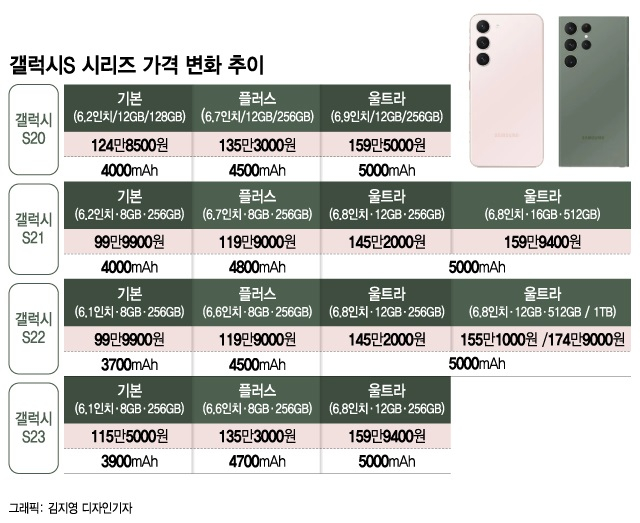 삼성전자(189,900원 ▲22,700 +13.58%)가 내달 1일(현지시간) 미국 샌프란시스코에서 공개하는 '갤럭시S23' 시리즈의 출고가가 부품값 인상으로 전작 대비 15만원가량 오를 전망이다.