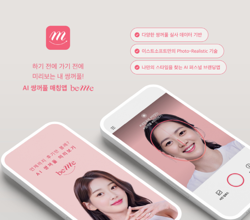 AI 서비스 전문기업 이스트소프트(12,650원 ▼300 -2.32%)는 AI 쌍꺼풀 미리보기 앱 '비미'(beMe)를 론칭했다며 4일 이같이 밝혔다. 이스트소프트는 "AI기술로 개개인 모두가 자신의 매력을 탐구하고 찾아갈 수 있도록 돕고자 새롭게 선보이는 앱"이라고 설명했다.