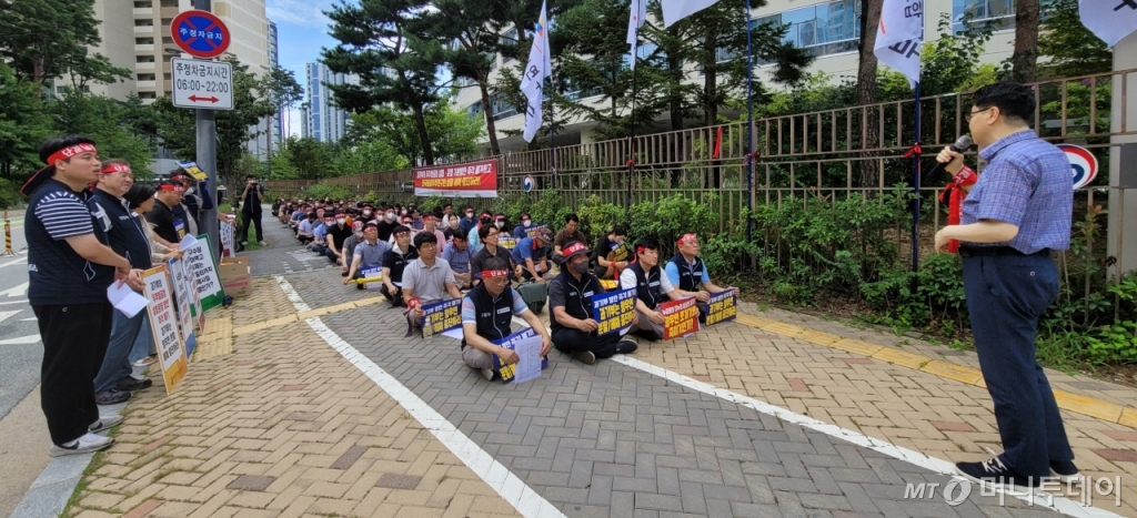 23일 오후 12시 과학기술정보통신부 세종청사. 한국항공우주연구원 노동조합 소속 연구자 80여명과 기술·행정직 20여명 등 100여명이 정부의 '우주항공청 설립·운영 기본방향'에 반대하는 팻말을 들었다. 팻말에는 '대한민국 우주개발 33년 전문가들 무시하는 과기정통부', '누리호·다누리 성공 대가가 항우연 쪼개기' 등의 문구가 쓰여있었다.