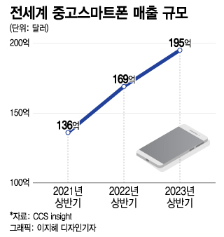 '폰플레이션' 심화에 따른 중고폰 수요 증가는 국내만의 사정은 아니다. 시장조사업체 CCS인사이트에 따르면 올 상반기 전세계 중고폰 시장 매출은 195억달러(약 25조8000억원)로 지난해 상반기(169억달러) 대비 15.4% 증가했다. 2021년 상반기(136억달러)와 비교하면 2년 새 43.4% 확대됐다.