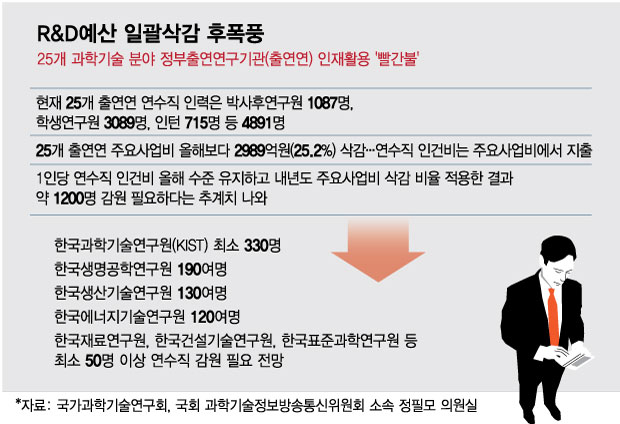 [R&D예산 일괄삭감 후폭풍] 25개 과학 연구기관, 미래인재 육성·활용 '빨간불'