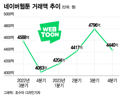 이밖에 네이버웹툰은 거래액 증가를 위해 다양한 BM(비즈니스모델)을 선보인다. 최근에는 일정비용을 결제하면 1시간 동안 18종의 웹툰 중 하나를 무제한으로 볼 수 있는 '몰아보기' 서비스를 출시했다. '광고보고 무료'처럼 영상광고를 보면 유료회차를 볼 수 있는 서비스도 도입했다. 유료결제 부담을 줄이려는 취지다.