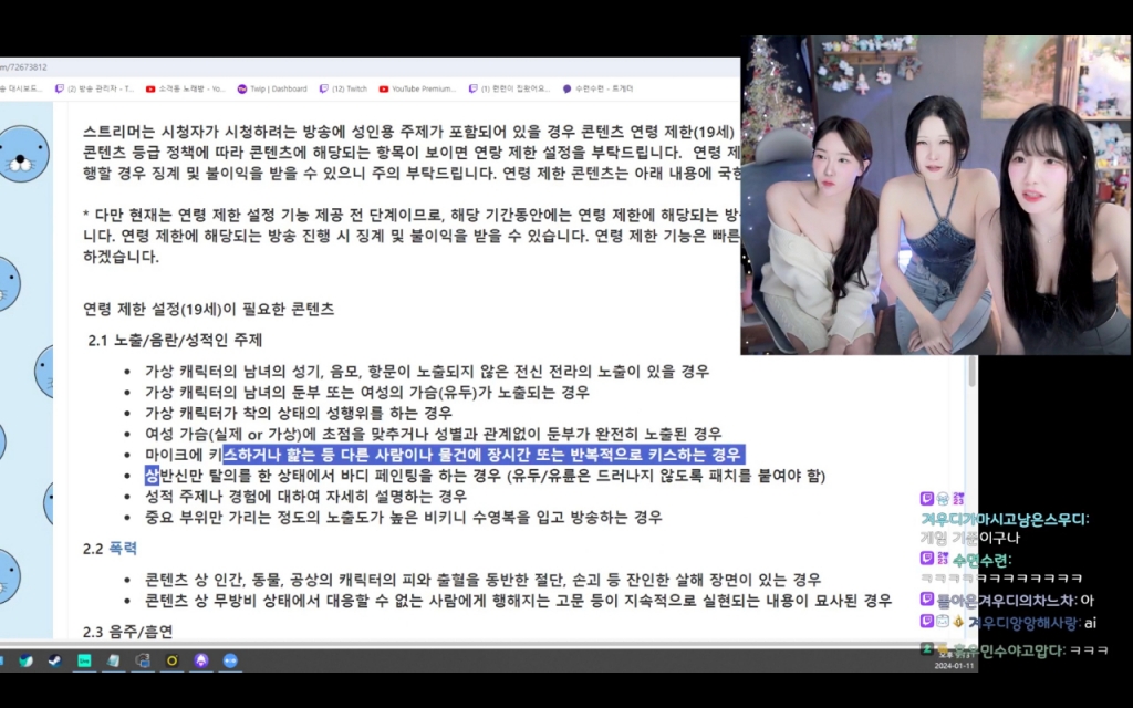 지난 1월 일부 스트리머들은 방송을 통해 '치지직 수위 테스트'를 진행하며 치지직에서 어느 정도까지 노출을 허용하는지 테스트하는 모습을 보이기도 했다. 특히 이들은 콘텐츠 가이드라인을 실시간으로 확인하며 '19금 방송'으로 연령제한을 걸 경우 허용되는 행위들을 조목조목 짚어내기도 했다.