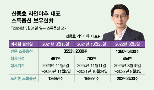 신중호 대표, 라인야후 스톡옵션 3분의 1 포기