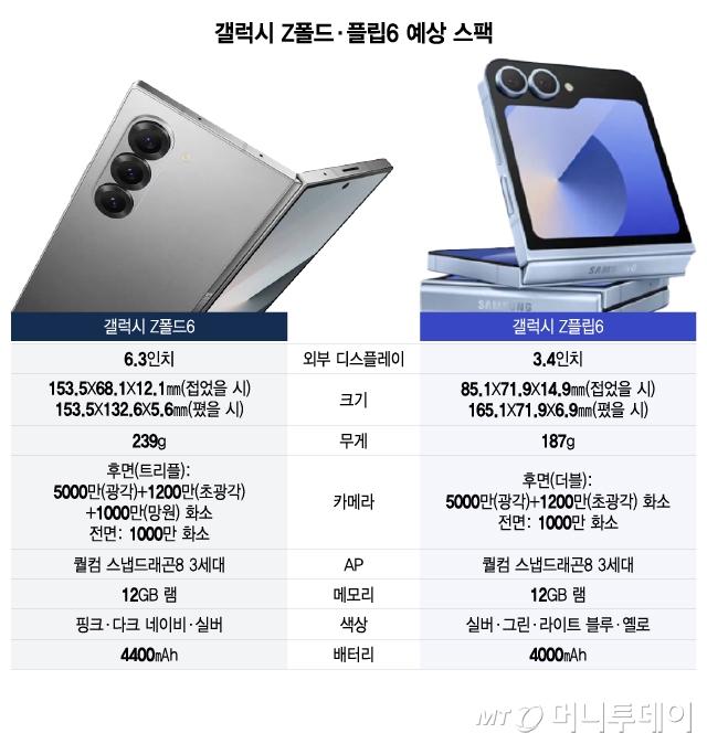 삼성전자는 오는 10일(현지시간) 프랑스 파리 루브르 박물관에서 AI 폴더블폰 갤럭시 Z폴드·플립6 시리즈를 공개한다. 갤럭시 Z폴드6는 무게·두께·베젤을 크게 개선했다. 갤럭시 Z플립6는 배터리 용량을 개선했고, 카메라 성능을 크게 끌어 올렸다. 두 모델 모두 외형에서는 큰 변화가 없지만, 생성형 AI 탑재 등 기능 개선에 집중한 것으로 보인다.