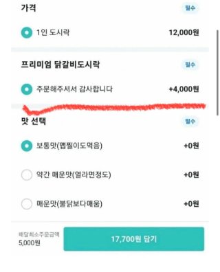 19일 IT(정보기술) 업계에 따르면 배달의민족(이하 배민)에서 일부 업주들이 메뉴 가격을 타사와 같게 설정한 뒤 주문 필수 선택 항목에 가격을 부여하는 '꼼수 메뉴' 방식으로 추가 비용을 받고 있다. 최소주문금액과 메뉴 가격만 보고 주문하러 들어온 사용자는 울며 겨자 먹기로 추가 비용을 결제하거나 다른 메뉴를 찾아야 한다.