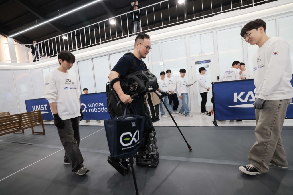24일 대전 대덕구 엔젤로보틱스 선행연구소(플래닛대전)에서 웨어러블 로봇 '워크온슈트F1'을 착용한 김승환 KAIST(카이스트) 연구원은 이처럼 소감을 밝혔다. 몇 해 전 불의의 사고로 하반신이 완전마비된 그는 마치 영화 '아이언맨'에 등장할 것만 같은 슈트를 입고 국제 대회인 '사이배슬론(Cybathlon)'에 한국을 대표해 출전한다. '사이보그 올림픽'이라고도 불리는 사이배슬론은 신체가 불편한 장애인이 웨어러블 로봇 등의 생체공학 보조 장치의 도움을 받아 각종 미션을 수행하는 국제대회다.