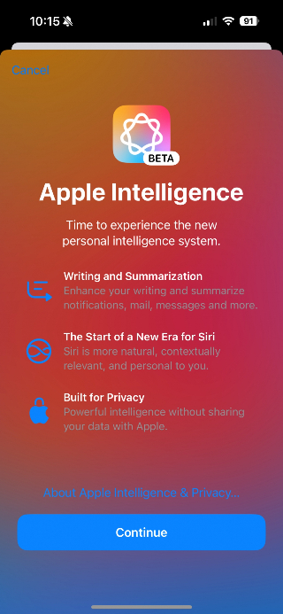 애플은 28일(현지 시각) 생성형 AI(인공지능) 기능을 탑재한 iOS 18.1을 업데이트했다. 이번 업데이트에는 아이폰의 생성형 AI 기능인 애플 인텔리전스 베타 버전이 탑재됐다.