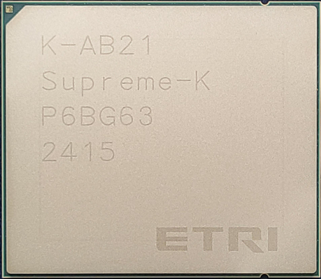ETRI(한국전자통신연구원)은 시스템온칩(Soc) 형태의 슈퍼컴용 가속기 칩 'K-AB21'을 개발했다고 30일 밝혔다. K-AB21은 12나노 공정으로 제작된 77x67㎜의 칩이다.