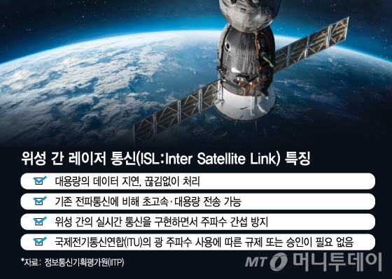 ISL 기술을 적용한 저궤도위성은 스마트폰 무선통신 등에 쓰이는 전파가 아닌 빛의 영역인 레이저를 이용하기 때문에 대용량의 데이터를 지연이나 끊김없이 처리할 수 있다. 또 국제전기통신연합(ITU)으로부터 광 주파수 사용 승인을 받을 필요가 없고, 지상국에 의존하지 않은 채 서로 멀리 떨어져 시속 수만㎞로 재빠르게 움직이는 위성 간 실시간 통신을 구현하면서도 주파수 간섭을 방지하는 게 특징이다.