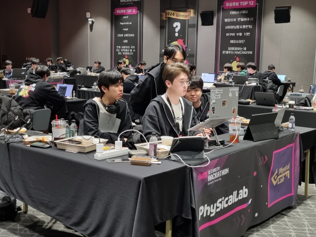 제출된 문제는 총 12개. 다른 팀이 못 푼 문제를 풀수록 더 높은 크레딧을 얻을 수 있다. 특히 어려운 문제를 푼 팀에서 환호성이 터져 나왔다. 참가자들은 정면 스크린에 표시된 각 팀 실시간 점수 및 등수를 틈틈이 들여다보며 문제풀이에 빠져들었다. 문제풀이 시간이 끝난 뒤 특별히 어려웠던 문제를 해설하는 시간과 선배 해커인 조정현 엔키화이트햇 부사장의 특강도 진행됐다. 대회가 끝난 후에도 서로 정보를 공유할 수 있도록 대회 기간 운영하던 디스코드 채널을 유지한다.
