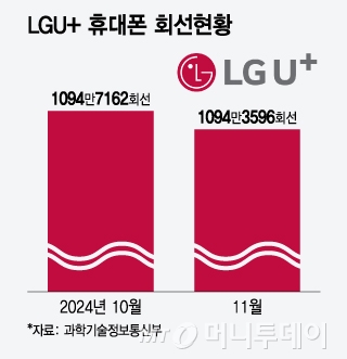 21일 과학기술정보통신부의 '유·무선통신서비스 가입 현황 및 무선데이터 트래픽 통계'에 따르면 지난해 11월 LG유플러스의 휴대폰 회선은 1094만3596건으로 전월 대비 3566건 감소했다. 당시 LG유플러스가 아이폰16 시리즈에 AI 비서 익시오를 출시, 한 달만에 누적 다운로드 20만건을 기록하며 업계 주목을 받은 점을 고려하면 아쉬운 성적이다.